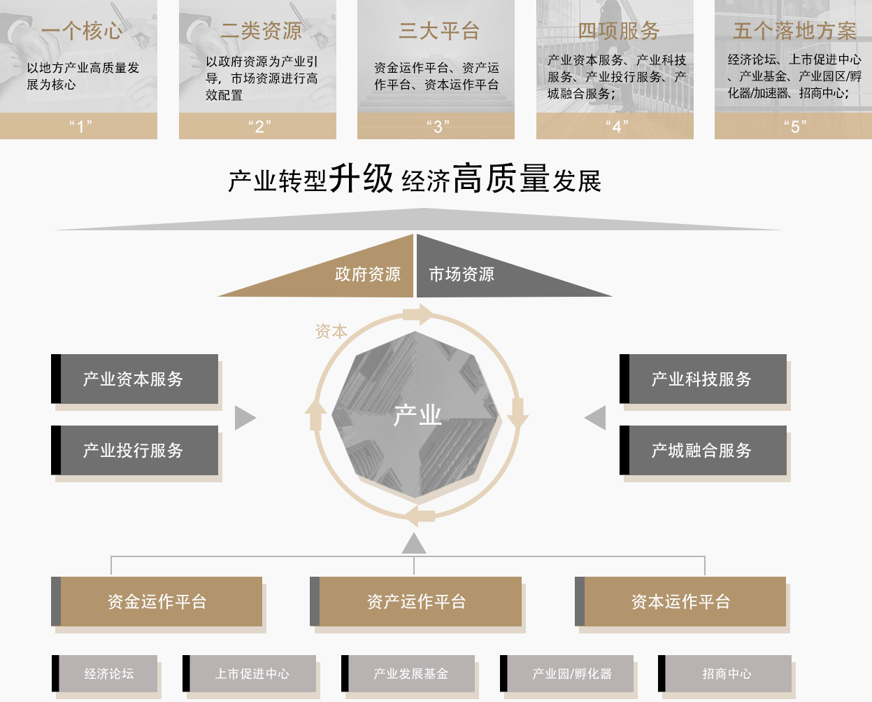 優(yōu)勢資本為地方政府提供“12345”資本整體解決方案,以資本助力地方產業(yè)轉型升級,推動區(qū)域經濟高質量發(fā)展。